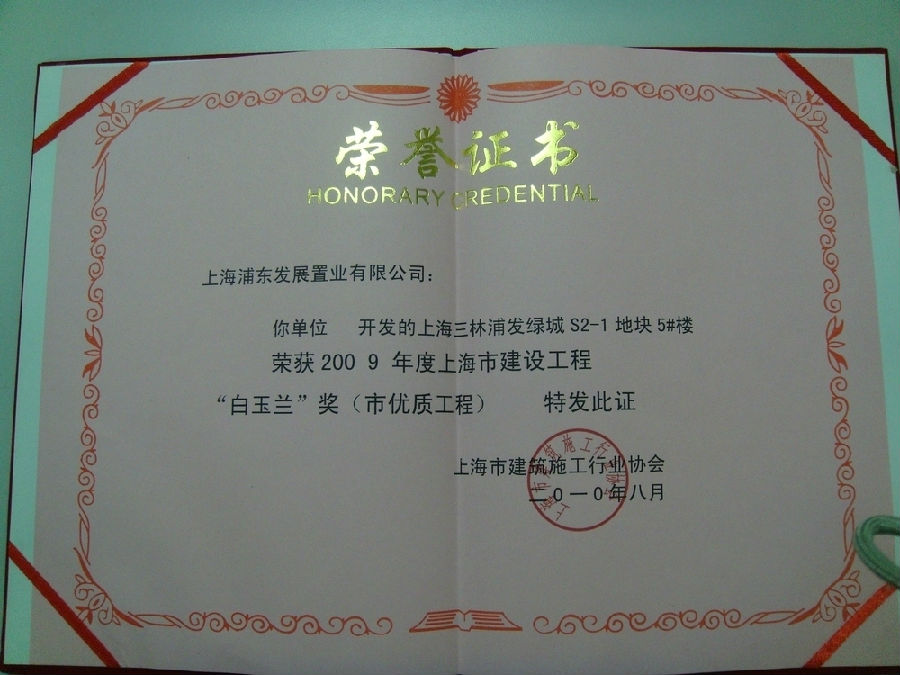 浦发绿城S2-1住宅商品房获“白玉兰”奖