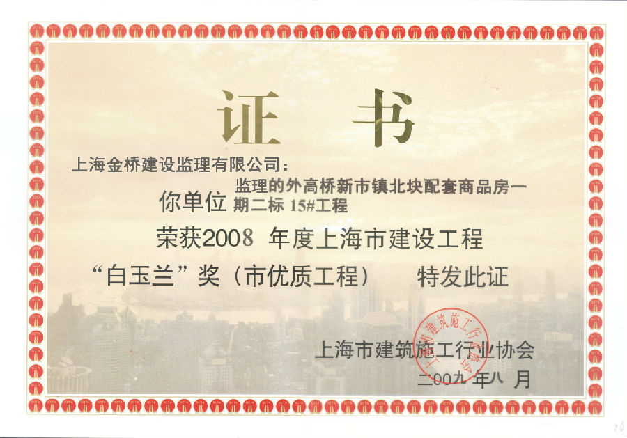 外高桥新市镇北块商品房15#房获“白玉兰”奖