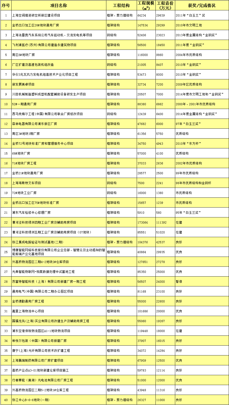 部分厂房工程监理项目业绩一览表