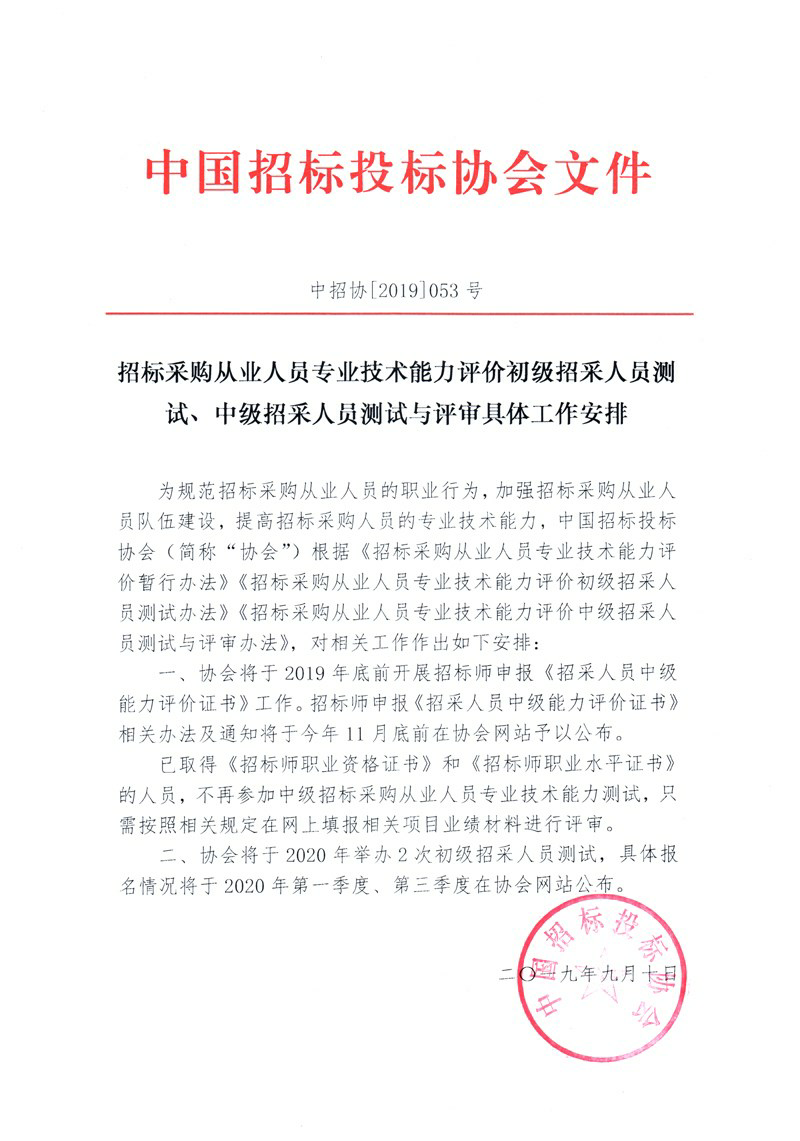 招标采购从业人员专业技术能力评价初级招采人员测试、中级招采人员测试与评审具体工作安排